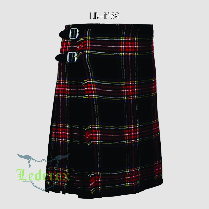 This Black Stewart Tartan Kilt showcases timeless Scottish heritage with a bold, modern twist. Made from premium tartan fabric, it features sharp pleats, adjustable leather straps, and reinforced stitching for long-lasting comfort and durability. The striking Black Stewart pattern adds a rich and elegant look, making it perfect for weddings, ceilidhs, Highland games, reenactments, or everyday wear. Designed for comfort, style, and authenticity, this kilt is an essential piece for any Highland wardrobe.
