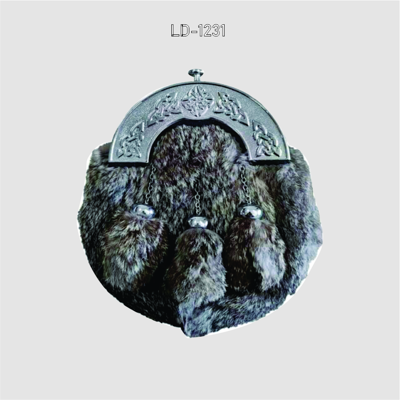 Add elegance to your Highland attire with this grey rabbit fur sporran, crafted from soft, premium rabbit fur with a durable leather backing. Designed for both style and practicality, it features a secure flap closure and adjustable straps for a perfect fit with any kilt. Ideal for weddings, ceilidhs, Highland games, or formal occasions, this sporran combines traditional Scottish craftsmanship with timeless design. A must-have accessory for authentic Highland dress.