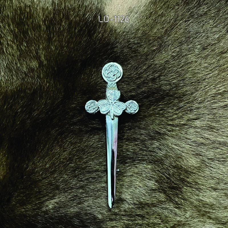 A beautifully crafted Thistle Mounted Sword Kilt Pin featuring the iconic Scottish thistle set atop a traditional sword design. Finished in a polished metal shine, this kilt pin adds a bold Highland touch to any kilt or tartan outfit. Perfect for Scottish ceremonies, clan gatherings, Highland dress, weddings, and everyday kilt wear. Strong, detailed, and designed to securely fasten your kilt with style.